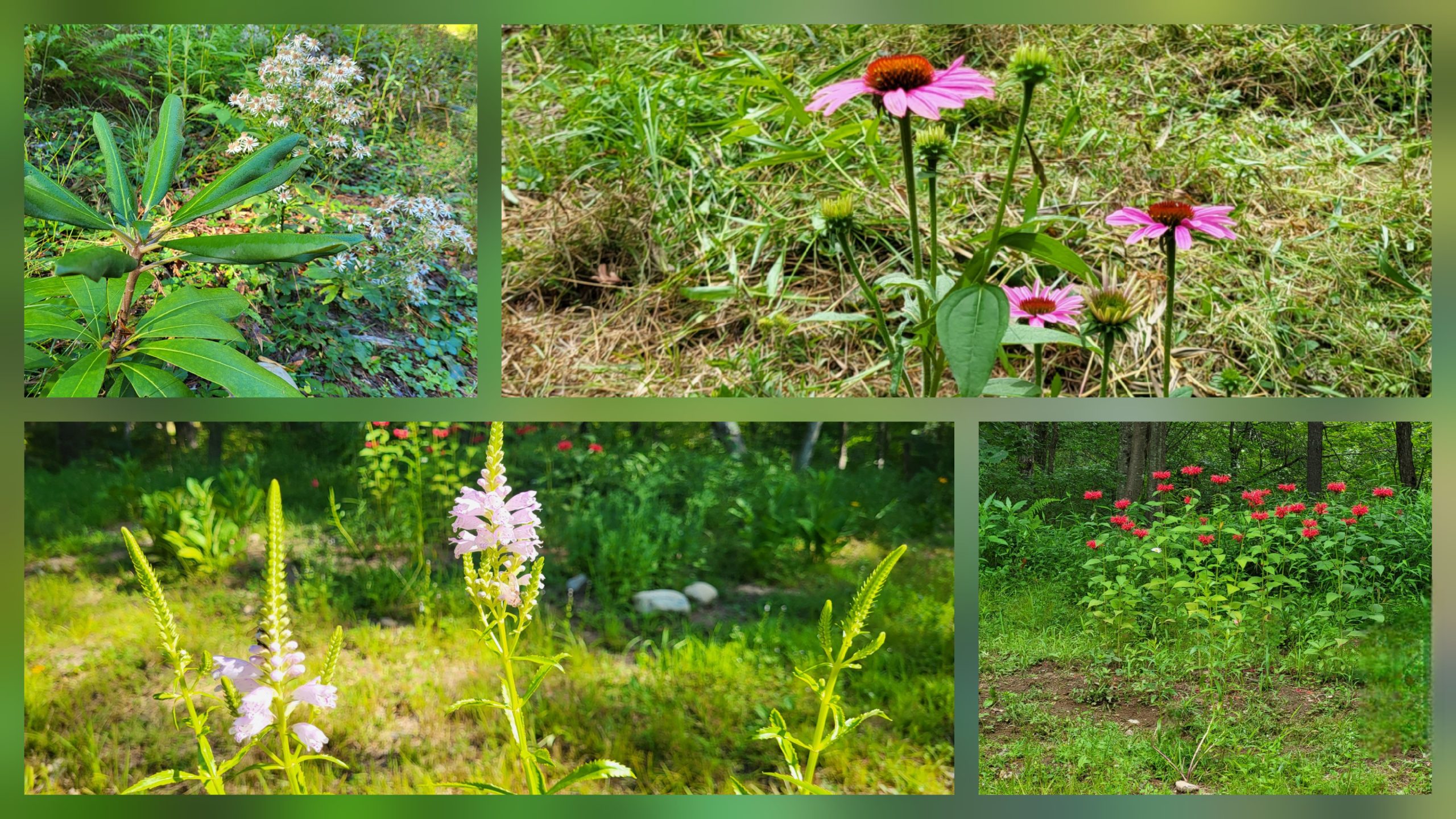 In a similar way, someone had the idea to build a wildflower meadow at the Wharton Plantation Burnt Meadow trailhead. This site was made available by the New England Forestry Foundation, which had once used the area as a logging station along Old Dunstable Road. A few people began preparing the site for planting. Before long, a passerby stopped to ask what was going on. When she learned about the meadow, she said, “I have some bee balm that would look nice up on the knoll—and it will attract hummingbirds.” Another offered, “I can bring some obedience plants that will do nicely in the wet area.” Later, a local garden store manager stopped by and said, “I have to write off some wildflower seeds—I’ll bring them over to plant for next year.”